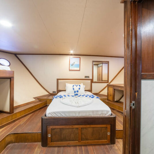 Built in the traditional Maldivian style, with our signature twin masts, Gurahali is the largest fleet in our group. The vessel can accommodate 14 guests comfortably. The wide beam of this vessel makes it very sturdy and spacious, allowing our guests the privacy on both the aft deck and the upper-deck. Styled in a rustic and minimalistic manner with modern amenities, our Captain and crew takes immense pride in making every journey safe and memorable.